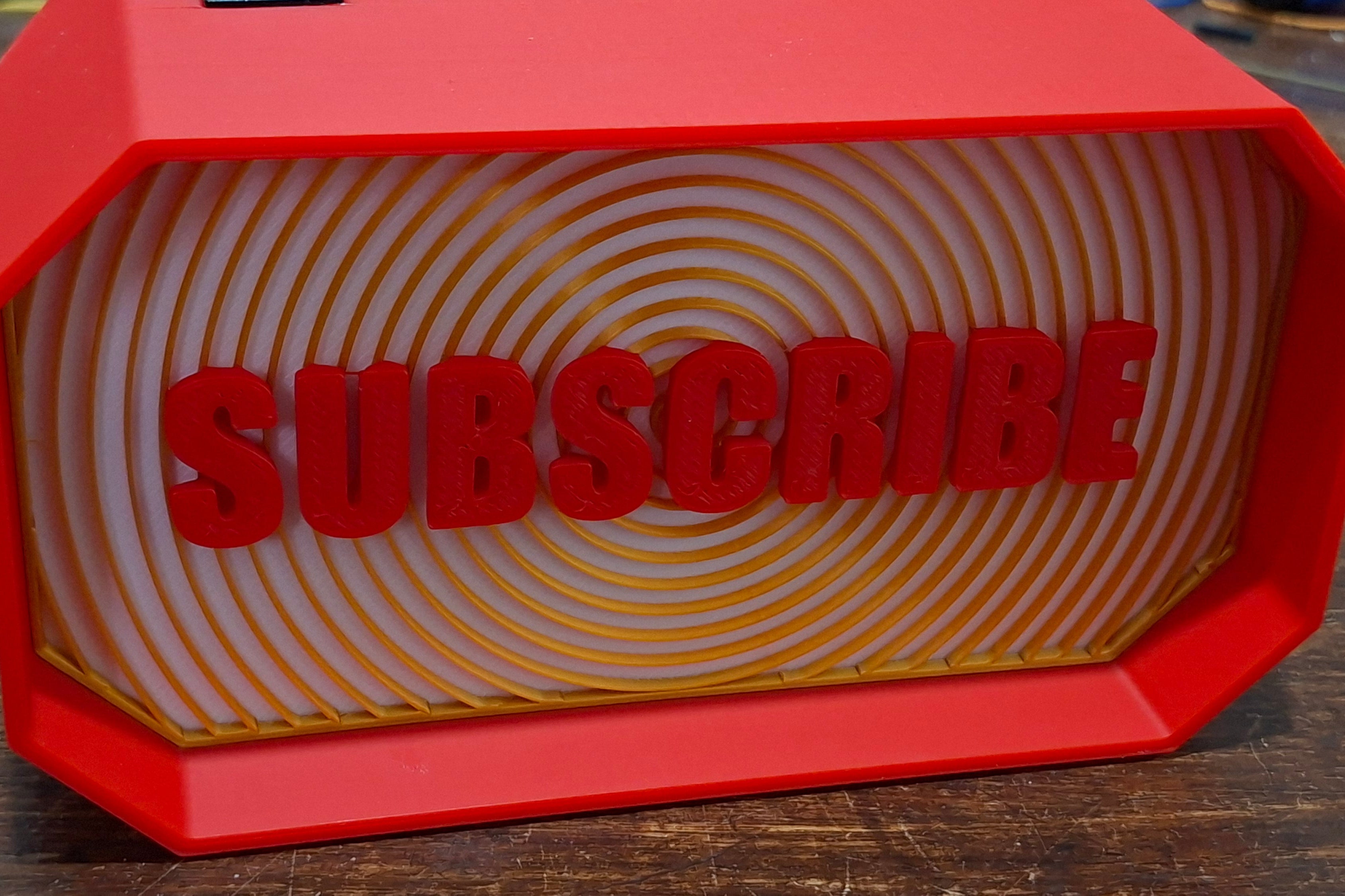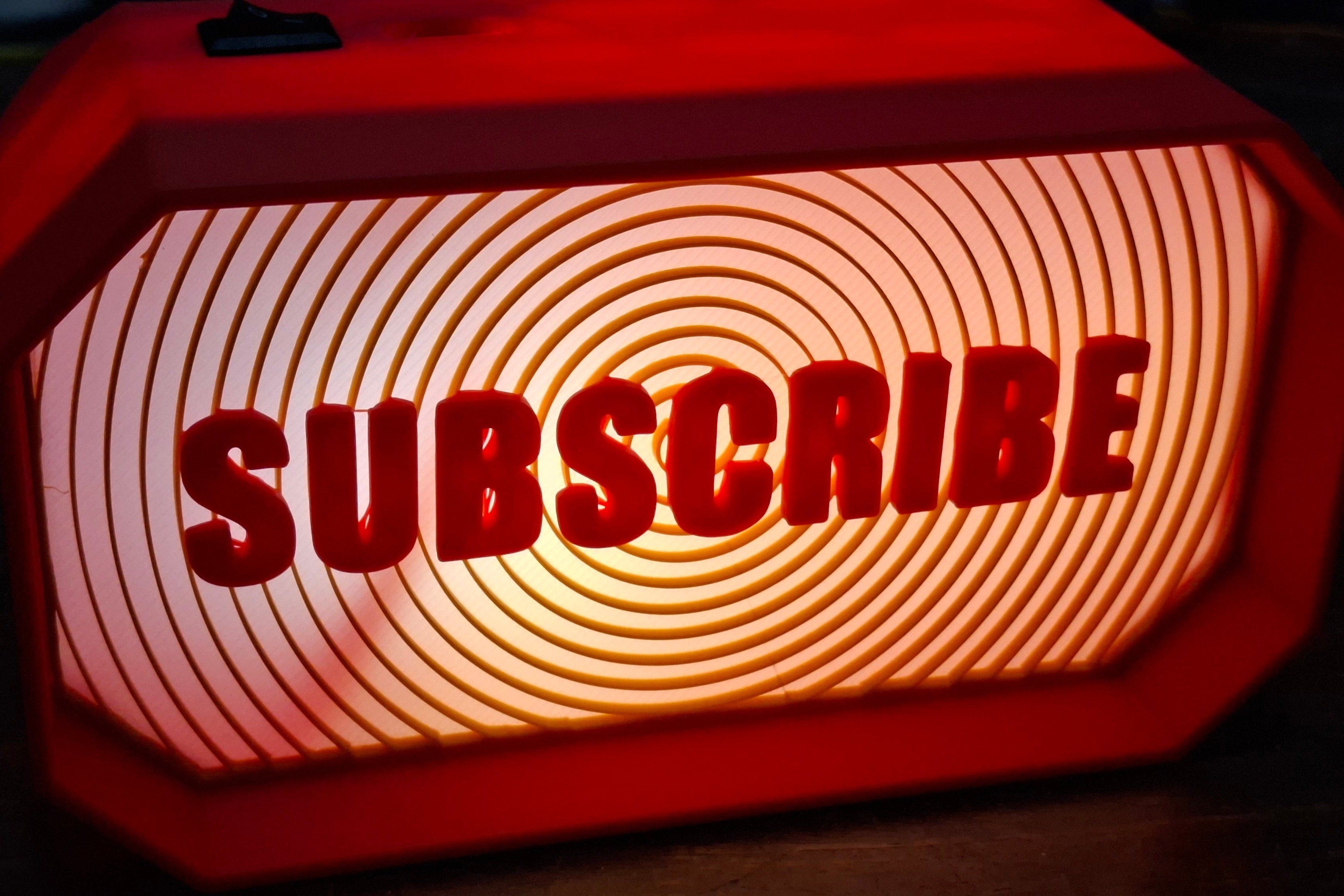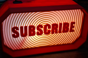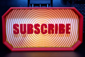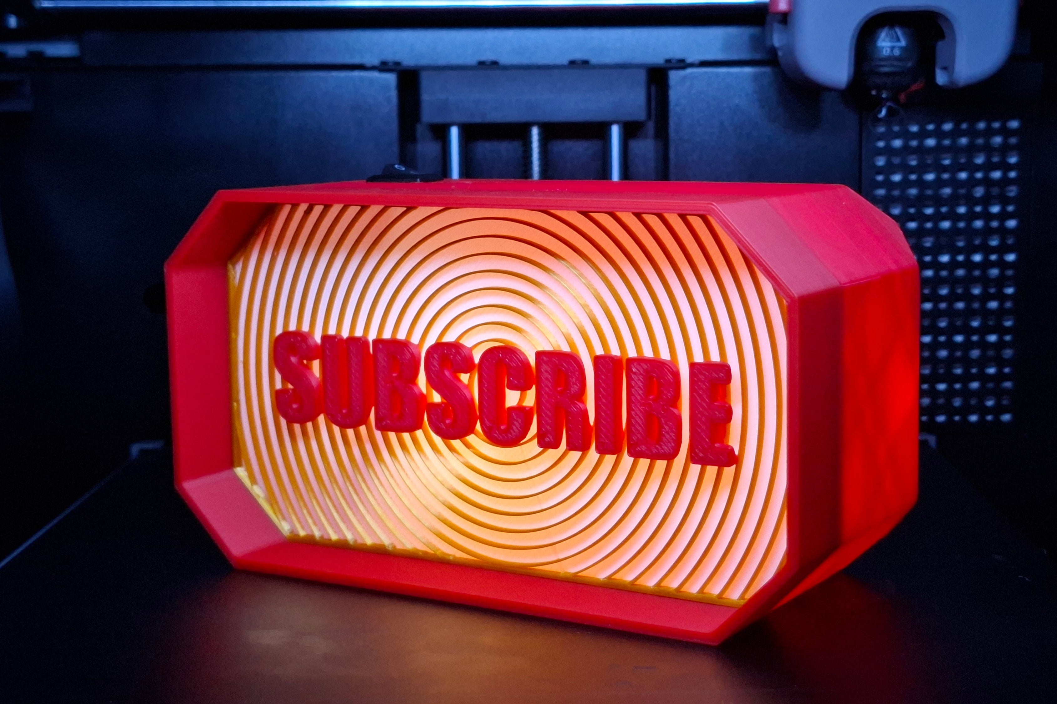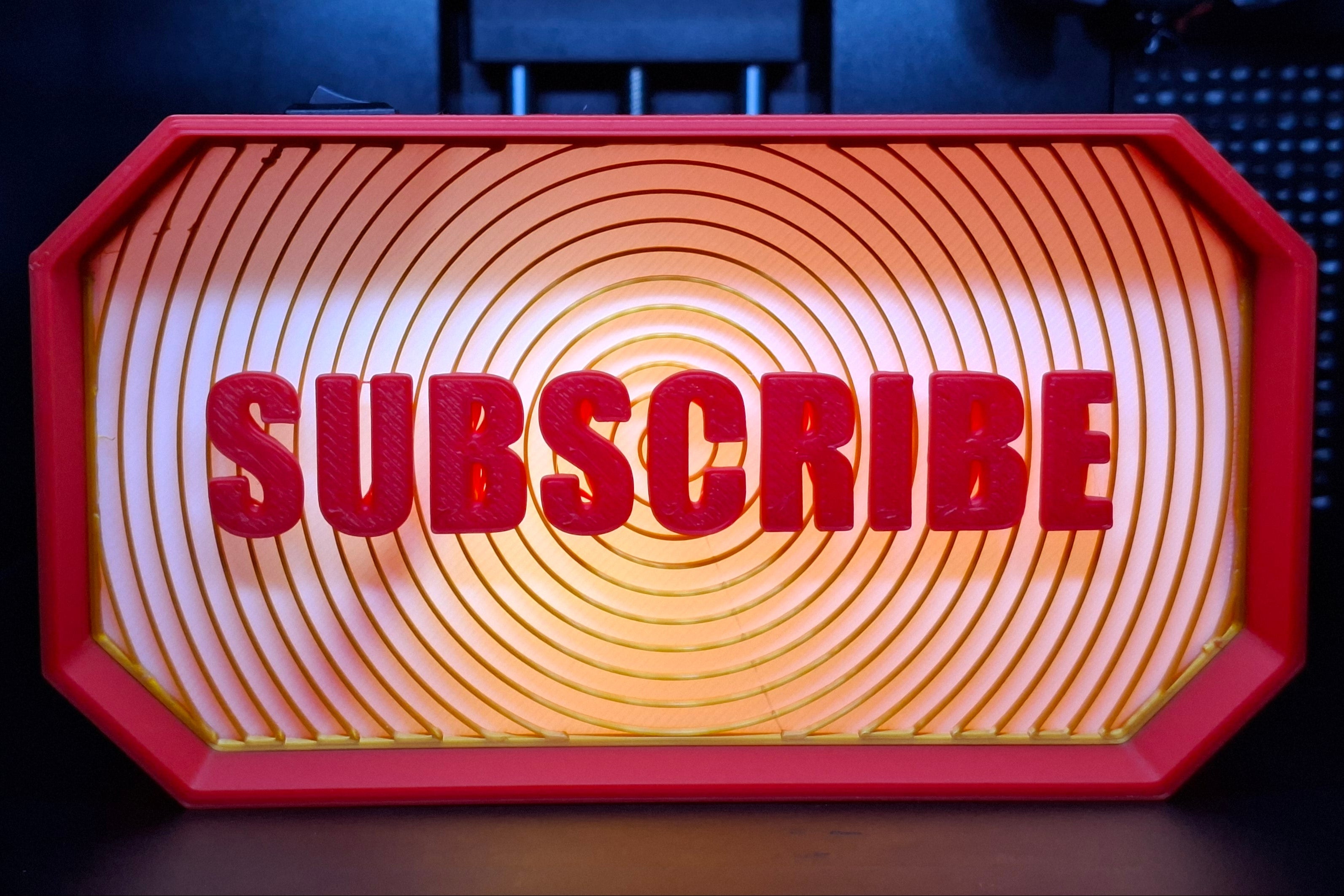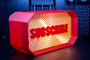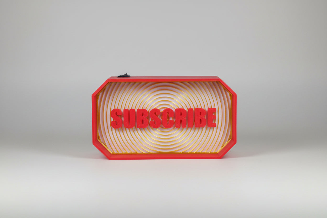 האירו את סביבת התוכן שלכם עם שלט תאורה מודפס בתלת־ממד עם הכיתוב הבולט "SUBSCRIBE"!