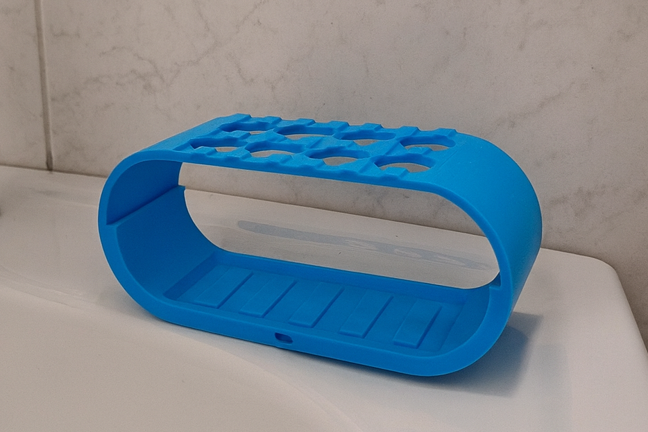 מחזיק מברשות שיניים מודפס בתלת־ממד לכיור האמבטיה.