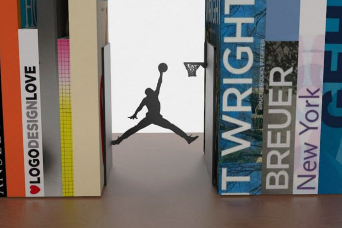 תומך ספרים בעיצוב כדורסל מודרני, המשלב פונקציונליות עם סגנון ספורטיבי.
